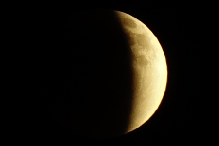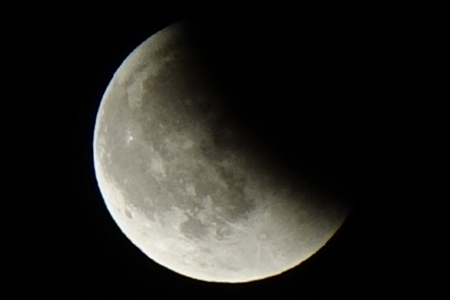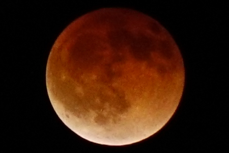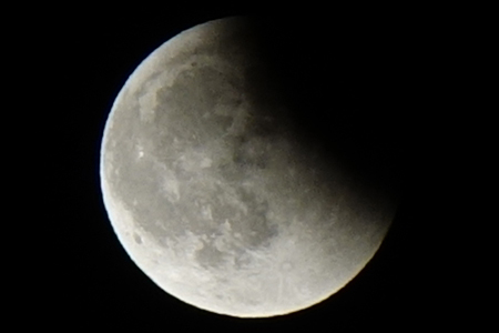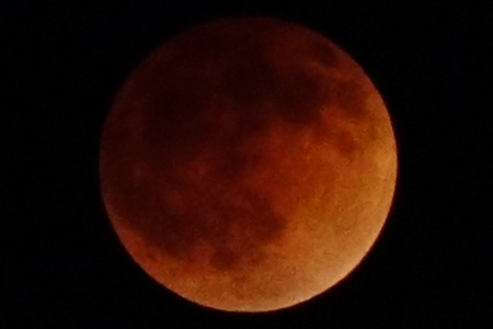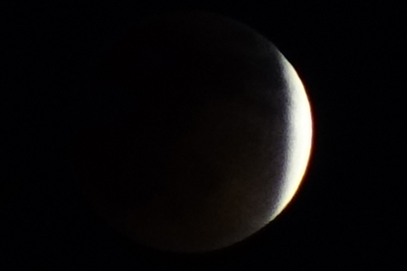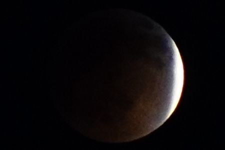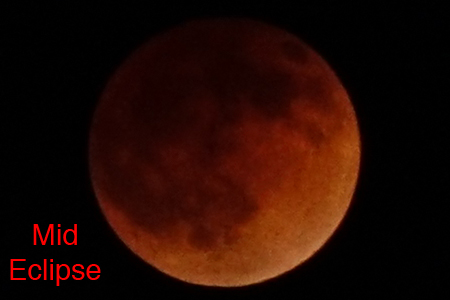 The photos below were taken during the spring eclipse. The moon entered the umbra at 9:58 pm on the 14th, entered totality at 11:06 pm and was at mid-eclipse at 11:55 pm. It left totality at 12:25 am on the 15th and left the umbra at 1:33 am. The total period shown below was through both umbral stages and totality for a total of three hours and 35 minutes with the camera (Sony DSC-RX10) being on the tripod the entire time except for a battery change at the 3 hour mark. The temperature was 25° F at 10 pm dropping to 20° F at 1:30 am. All photos were taken using the 200 mm focal length (35 mm eq). The umbral photos were taken at ISO125, increasing to ISO400 prior to totality, with the last photo before totality at ISO800 where it remained until the moon exited from totality at which point ISO125 was again used.