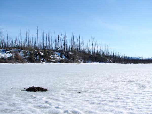 Effect of forest fire in 2004 on the southern margin of the lake.