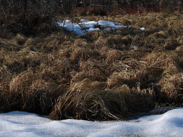 Series of muskrat push-ups near the southern margin of the thaw lake.