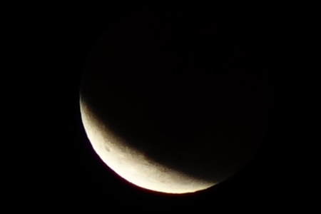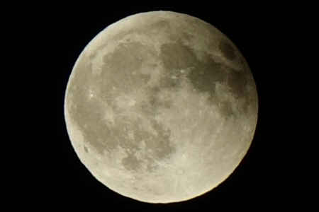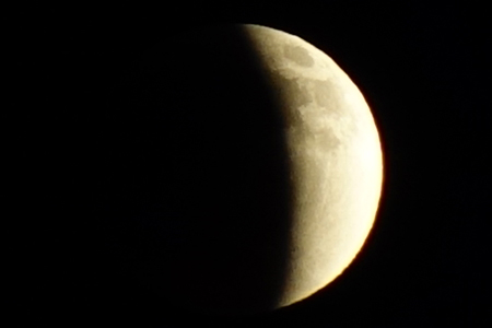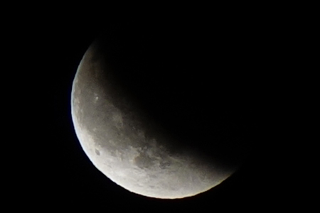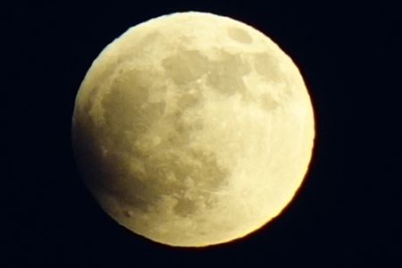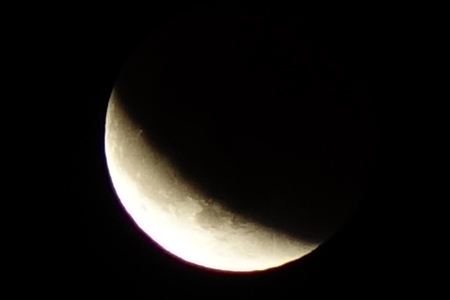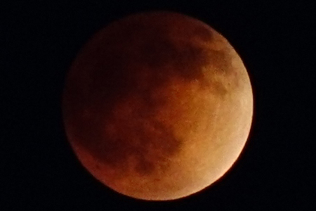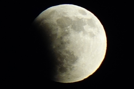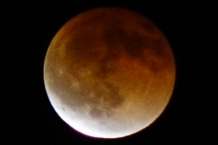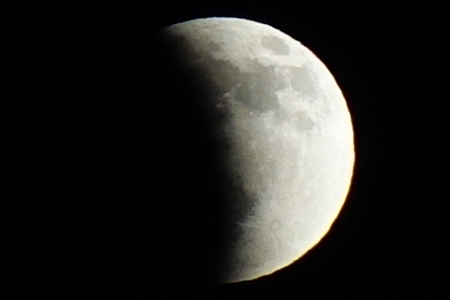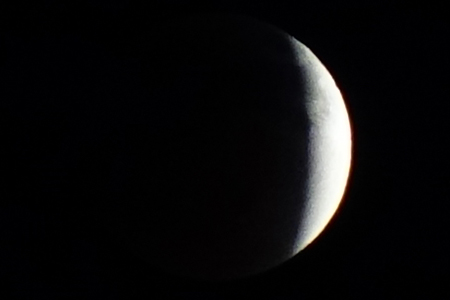 The photos below were taken during the spring eclipse. The moon entered the umbra at 9:58 pm on the 14th, entered totality at 11:06 pm and was at mid-eclipse at 11:55 pm. It left totality at 12:25 am on the 15th and left the umbra at 1:33 am. The total period shown below was through both umbral stages and totality for a total of three hours and 35 minutes with the camera (Sony DSC-RX10) being on the tripod the entire time except for a battery change at the 3 hour mark. The temperature was 25° F at 10 pm dropping to 20° F at 1:30 am. All photos were taken using the 200 mm focal length (35 mm eq). The umbral photos were taken at ISO125, increasing to ISO400 prior to totality, with the last photo before totality at ISO800 where it remained until the moon exited from totality at which point ISO125 was again used.