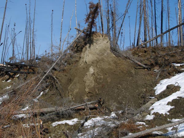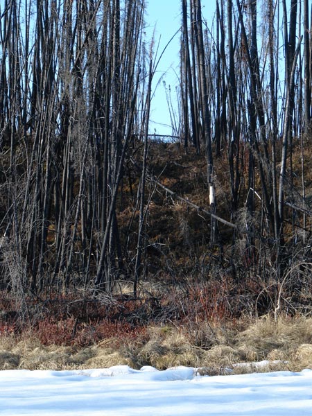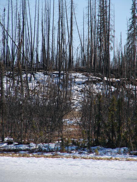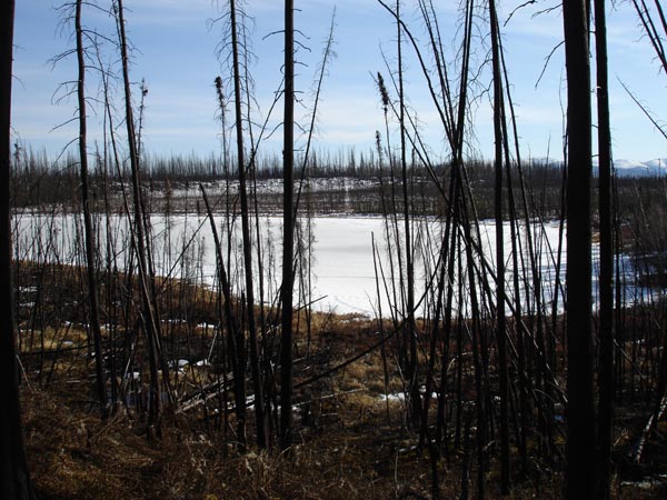 Effect of forest fire in 2004 on the southern margin of the lake.